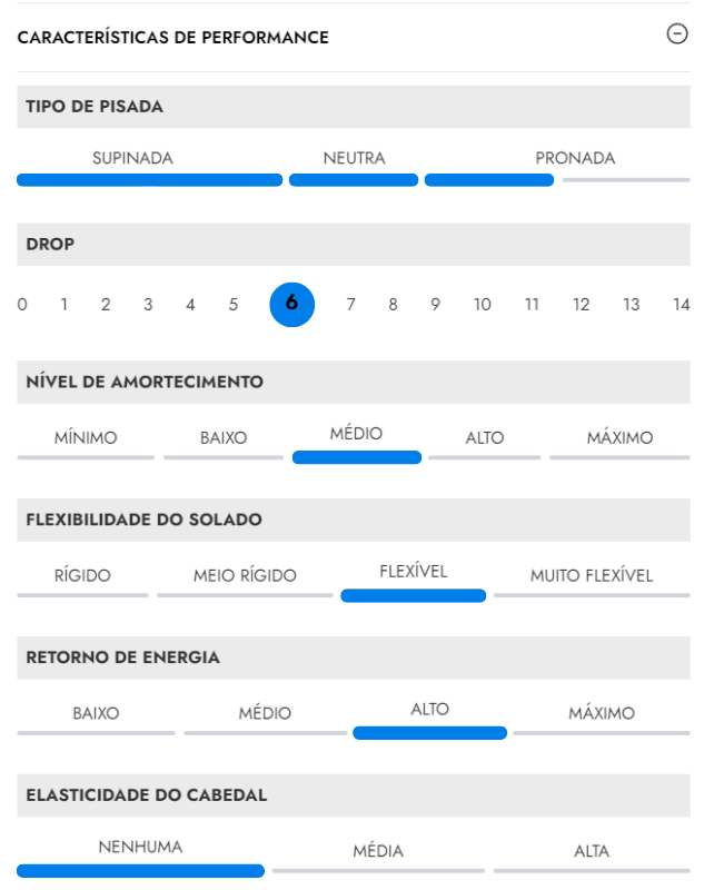 A lingueta é perfurada para auxiliar na respirabilidade e o colarinho tem um acolchoamento mínimo para trazer conforto sem adicionar peso extra. A palmilha é toda perfurada, o que ajuda a reduzir peso e a não reter suor ou água em uma situação de chuva.